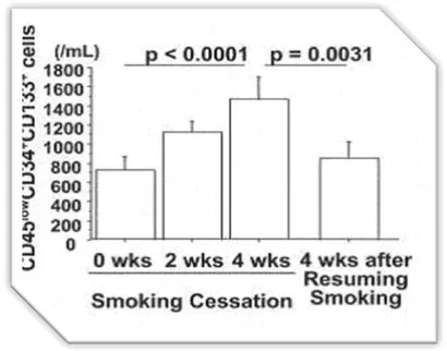 Reference: Kondo et al. Smoking cessation rapidly increases circulating progenitor cells in peripheral blood in chronic smokers. Arterioscler Thromb Vasc Biol. 2004 Aug;24(8):1442-7. J Neurol. 2007 Mar;254(3):327-32.
